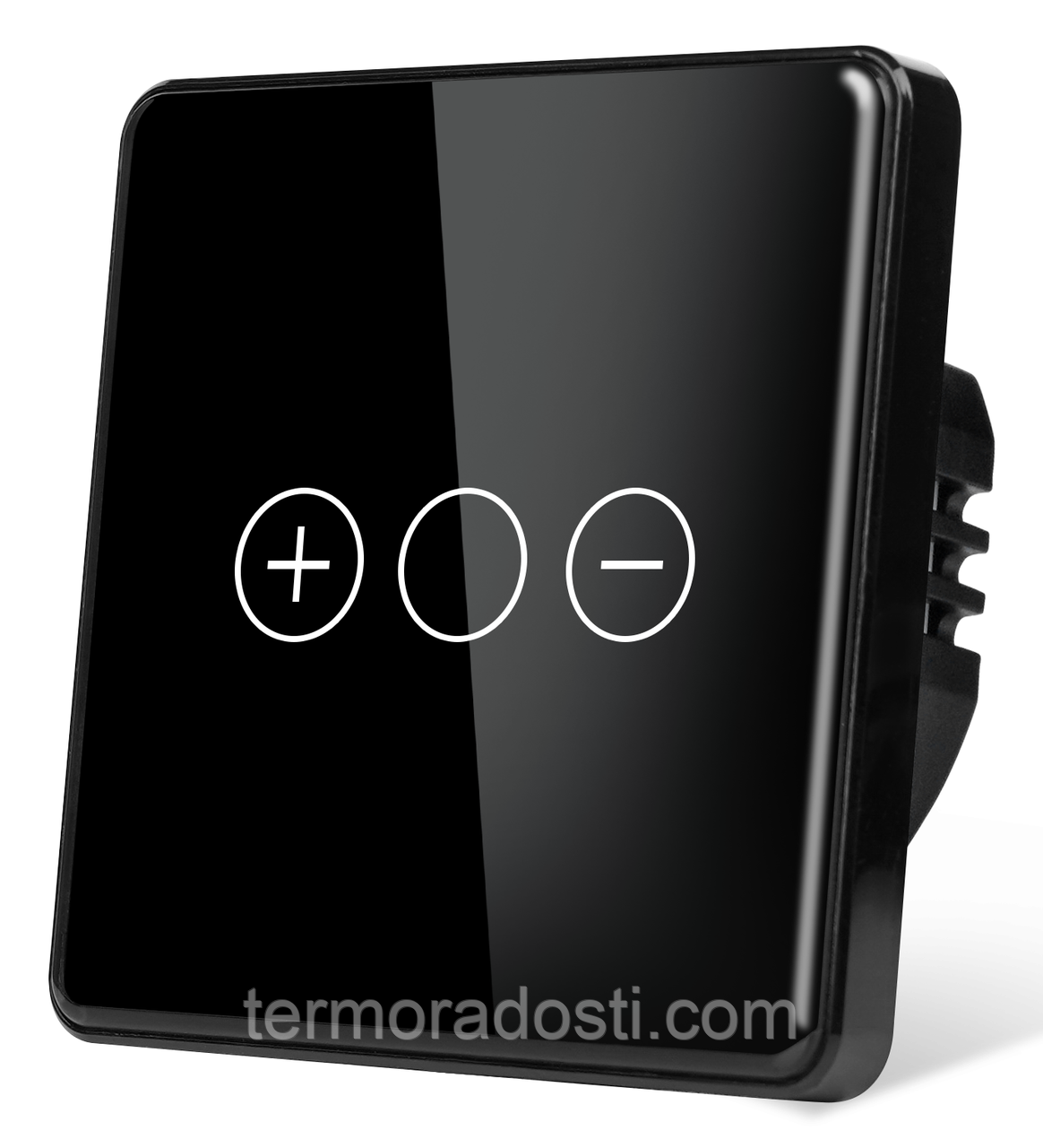 - Димер має скляну панель чорного кольору, яка надає пристрою сучасного та стильного вигляду. Скляна поверхня стійка до подряпин і легко очищається.