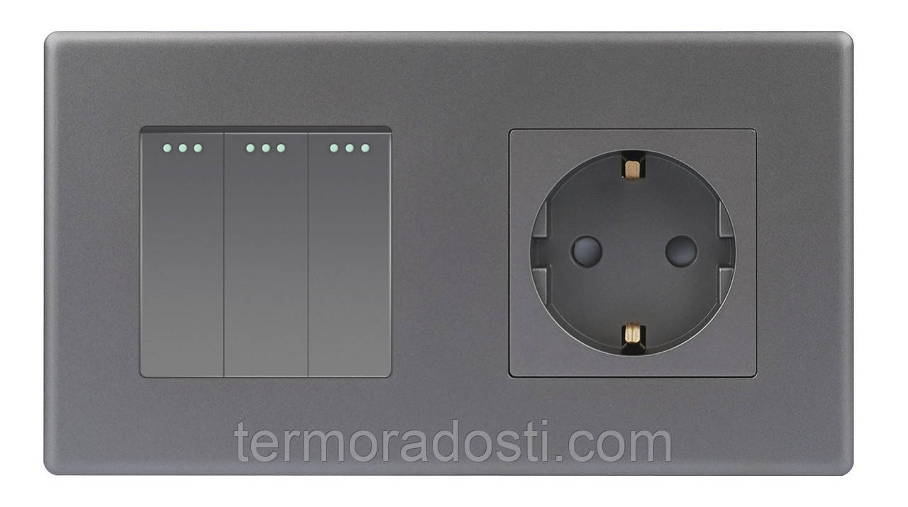 Вимикач (3кл.) + Розетка 1DAL | Сірий (P157-SW3G-ST.GR)