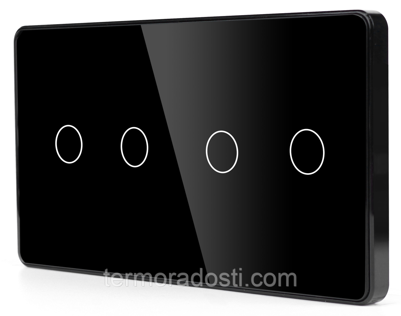 Вимикач сенсорний 2 пости 1DAL | (2+2 сенсор) Чорний Скло, Без нейтралі (G157D-SW2GX2.SL.BL)